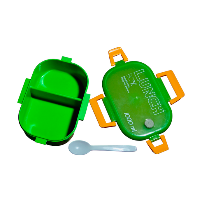 Green Portable Rectangle Lunch Box With Spoon 1000 ML BCP1053E