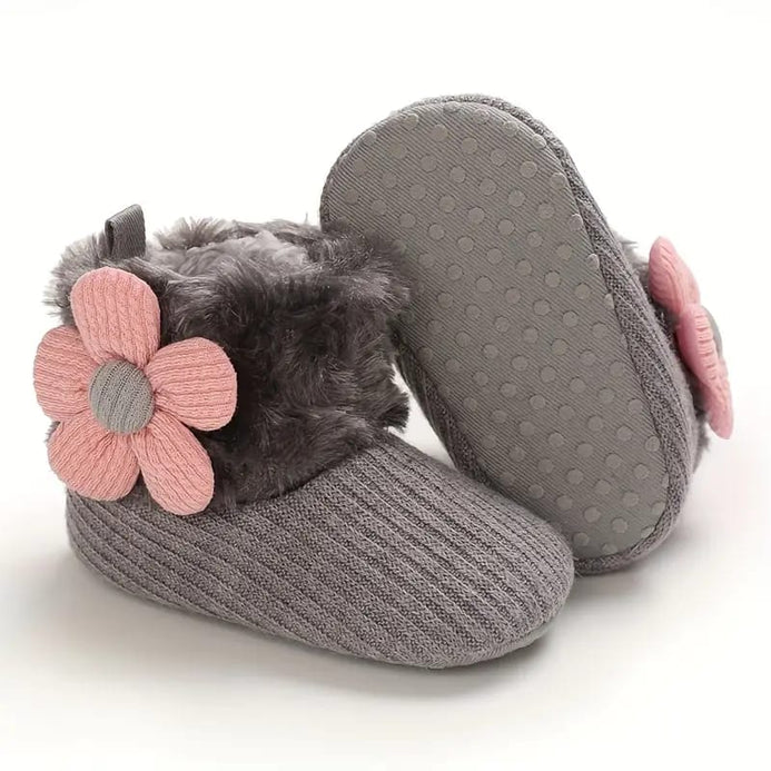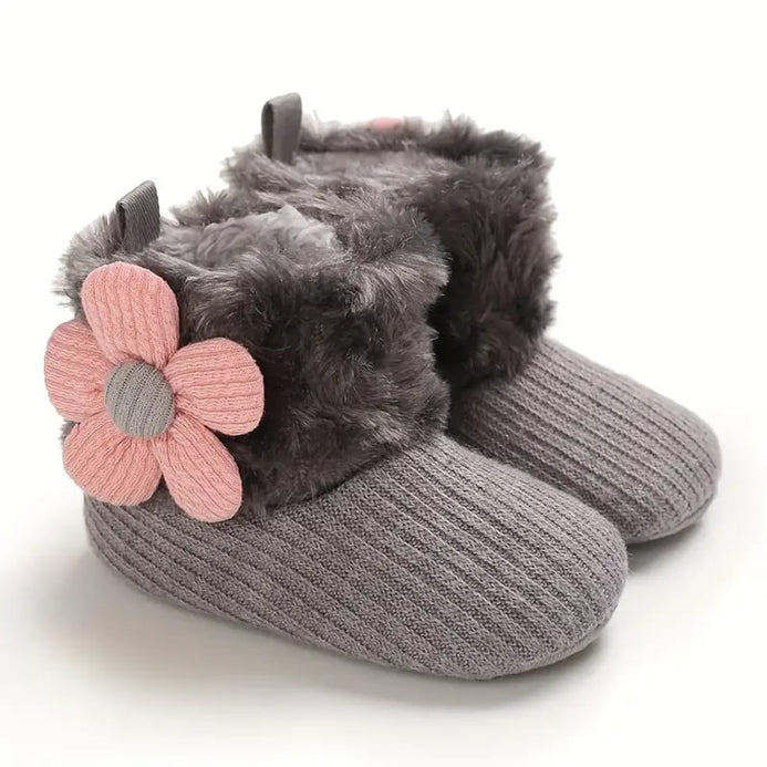Gray Girls' Winter Snow Boots - Slip-On Ankle-High Cold Weather Shoes with Soft Fabric Sole, Warm Toddler Shoes SH7171A