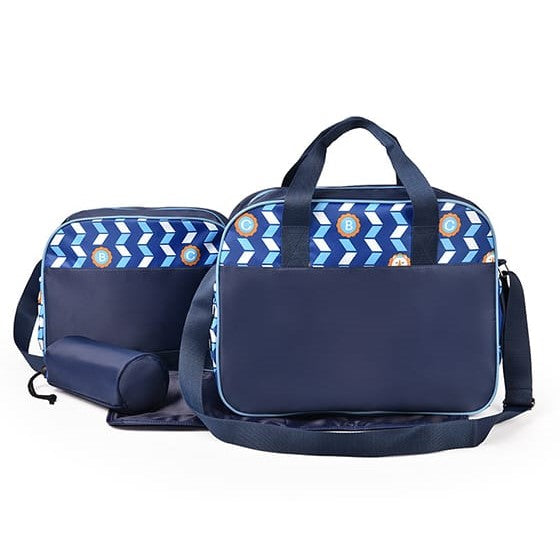 Pack of 4. Sunshine's Dark Brown Premium Diaper Bag Set - thoughtfully designed multi-utility mother bags that include two-size printed bags featuring durable zipper closures, a separate mini feeder bag, and a convenient waterproof nappy changing mat – all in one organized solution for your baby essentials.