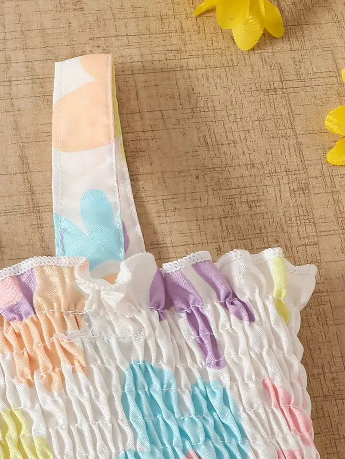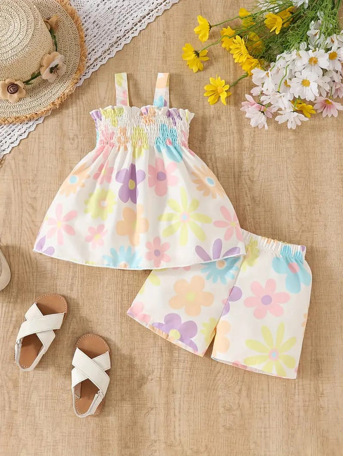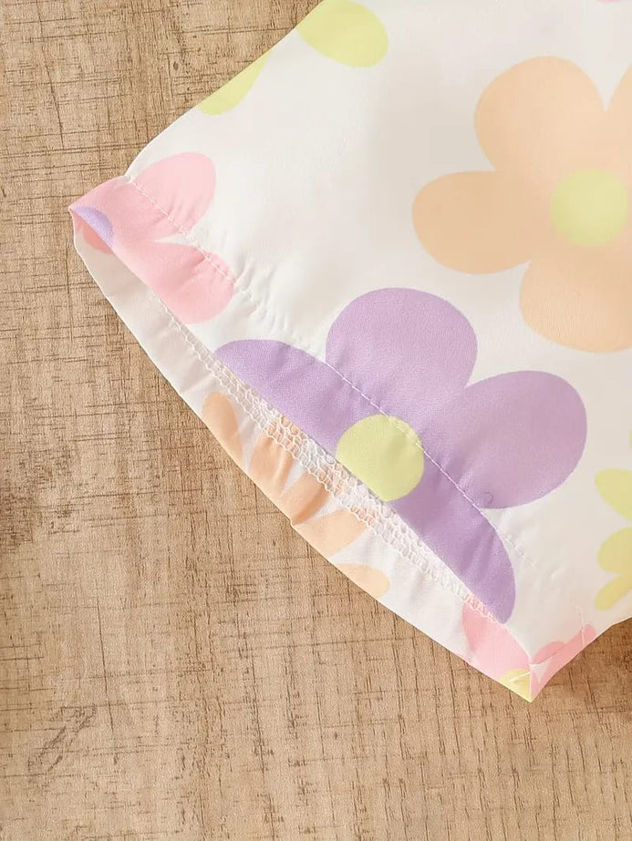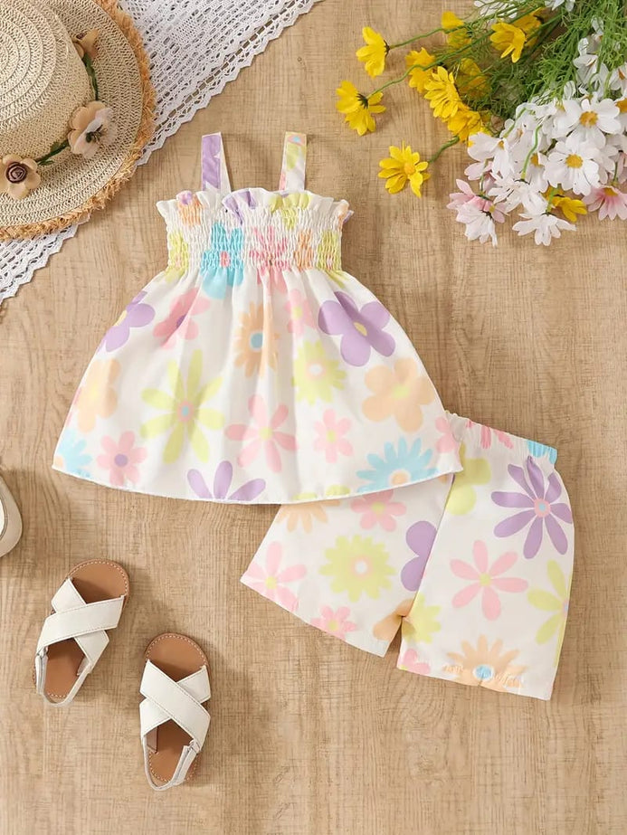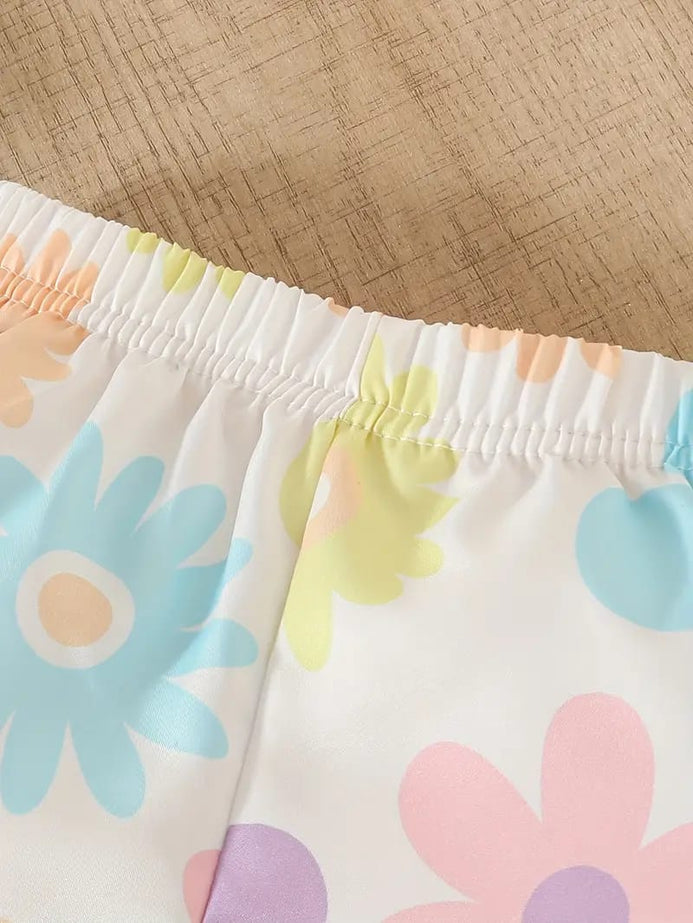 Girls' Mini Floral Ruffle Sleeve Top with Cute Shorts Set, Perfect for Outdoor FD6128A