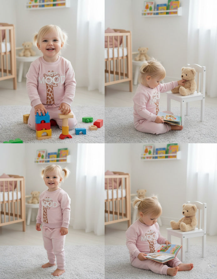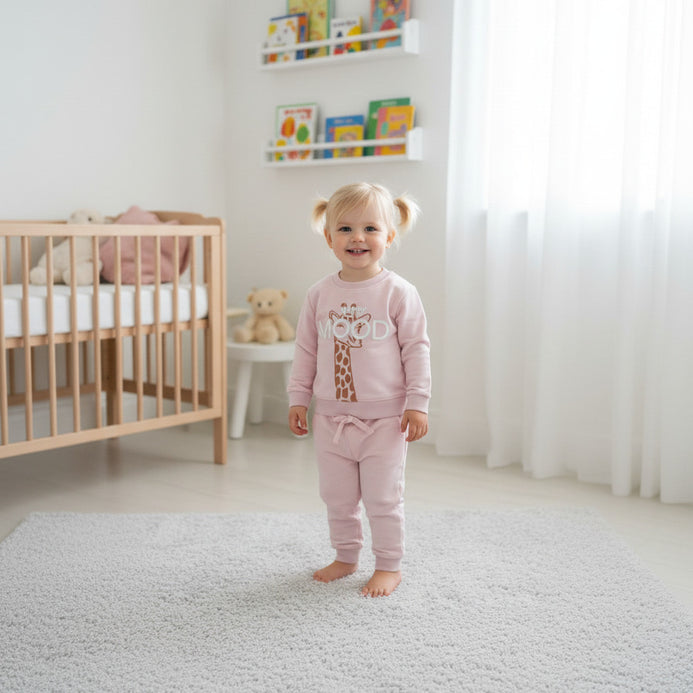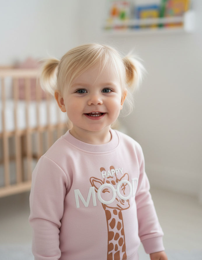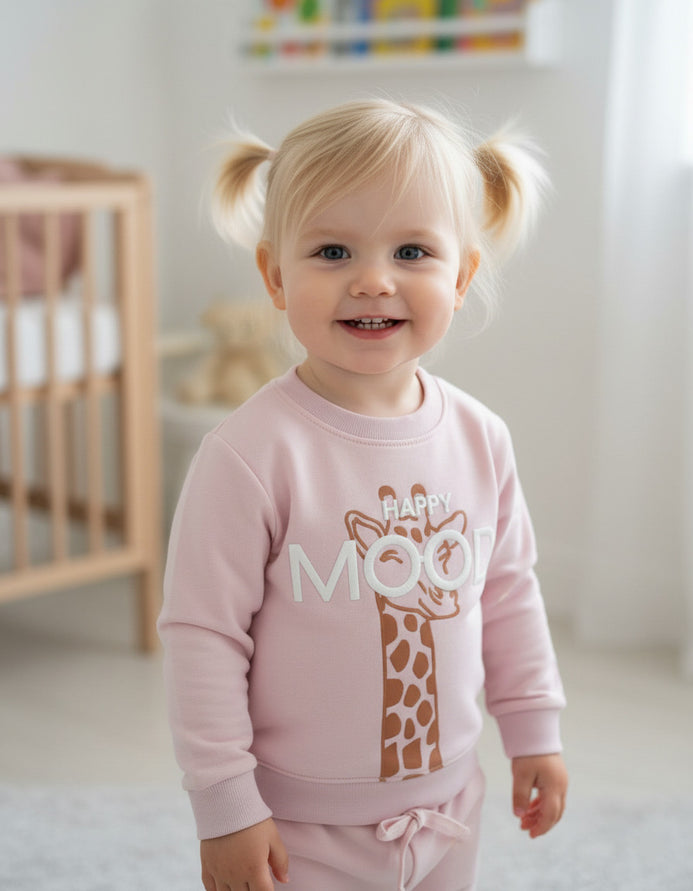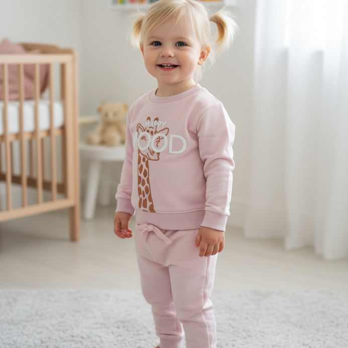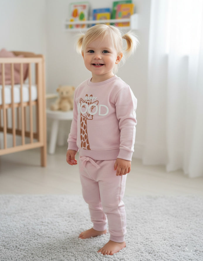 JF 2 PC Baby Pink Happy Mood Autumn & Winter Terry Fabric Track Suit, Sweatshirt and Trouser Set TS6418B