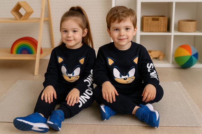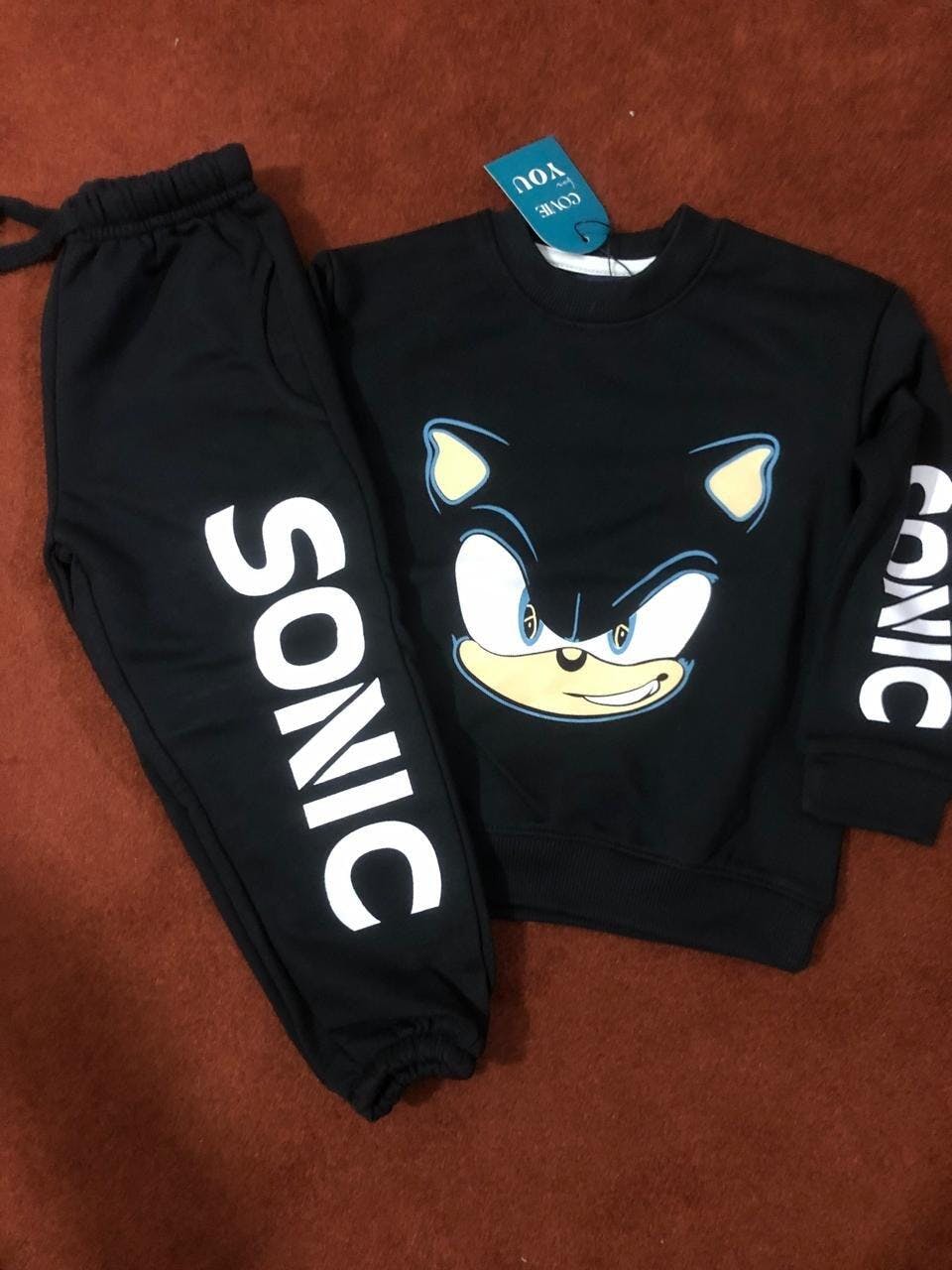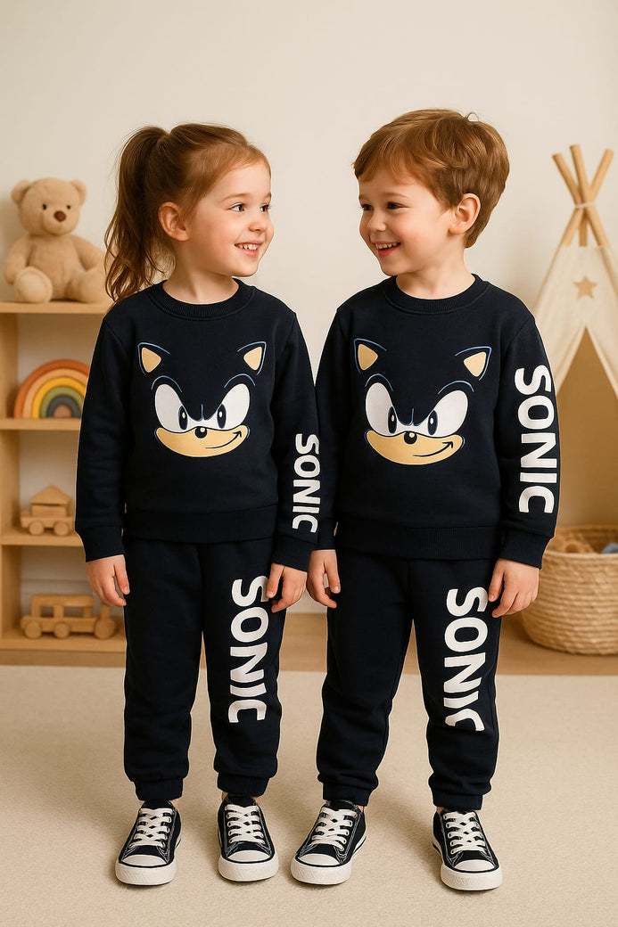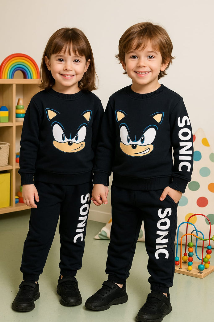 JF 2 PC Black Sonic Autumn & Winter Terry Fabric Track Suit, Sweatshirt and Trouser Set TS6418I