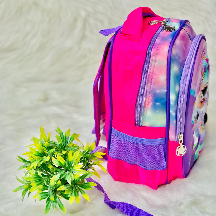 This is a small size school bag suitable only for Kids of preschool, prep and Nursery. It has 2 big pockets and a small side pocket for water bottle. It has waterproof fabric very smooth and soft to touch. It has padded back and padded shoulder slings to make our kids feel comfortable. It has a wonderful 3D cartoon printed at the face of the bag which keeps the child engagement level high and motivate the child for going to school happily