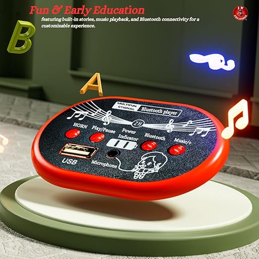 - Music Control: Kids can select music, rhymes, or stories via buttons, and external devices can be connected via USB or Bluetooth.