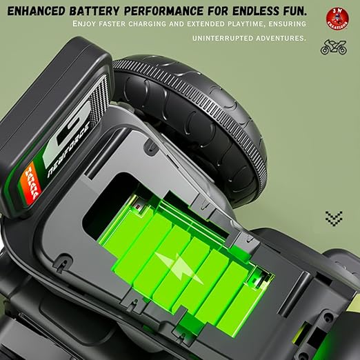 Let your little racer shine with the Kids Ride-On Stylish Bike – a sleek, sound-filled, and power-packed ride made for mini speedsters who love to ride in style! With 1 strong battery, 2 motors, LED lights, and built-in music, it turns every sidewalk into a stage.