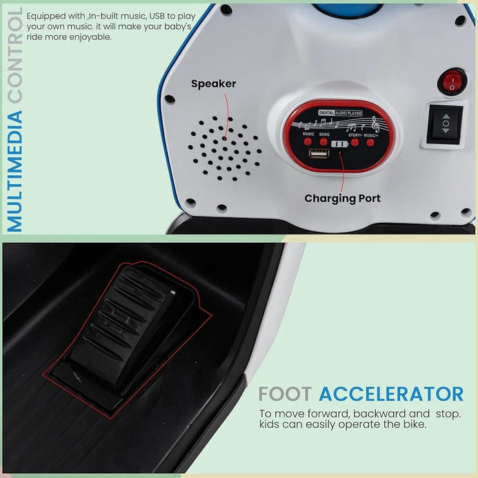 Easy and Independent Riding: Baybee's battery-operated bike is designed for ease of use, allowing toddlers and young children to operate it independently. With a foot pedal for acceleration, your child can effortlessly navigate the bike on smooth, flat surfaces, promoting a sense of confidence and control.