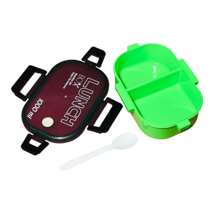 Green Portable Rectangle Lunch Box With Spoon 1000 ML BCP1052B