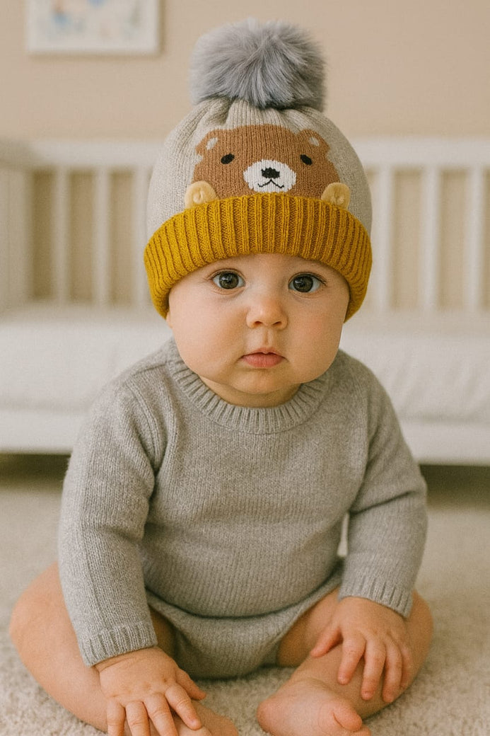 Gray Baby Bear Face Warm Winter Wool Cap (0 Months - 24 Months) CP5098C