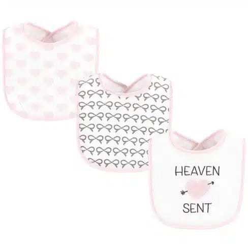 Features and Benefits Bibs: 100% cotton, soft and absorbent fabric. This set includes 3 bibs for 0-6 months Care Instructions. Machine washable pre-washed and stays soft wash after wash.