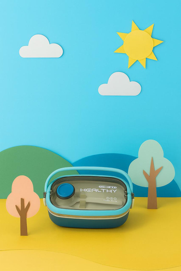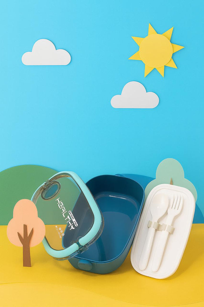 Imported Blue Portable Rectangle Lunch Box With Spoon Set 800 ML BCP1063D
