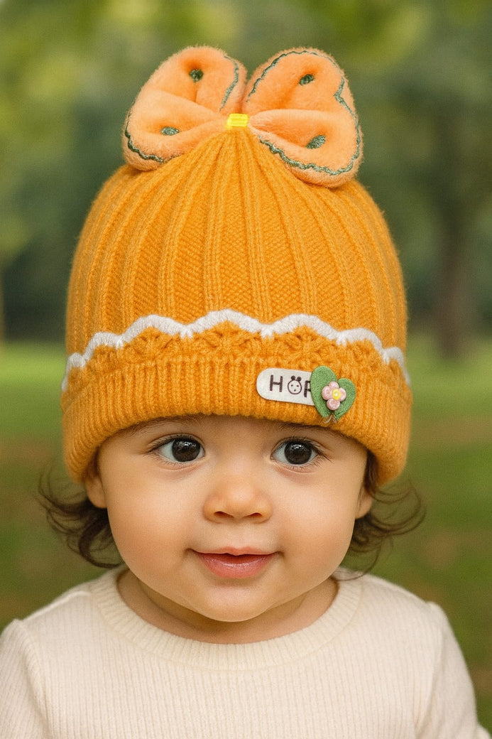 Orange Fashion Happy Baby Knitted Warm Winter Wool Cap (6 Months -3 Years) CP5088C