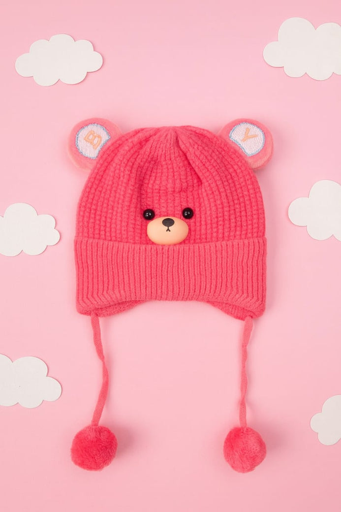 Pink Baby Bear Face Fashion Knitted Warm Winter Wool Cap (1 Years -5 Years) CP5102A