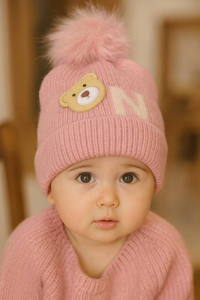 Pink Baby Bear Knitted Warm Winter Wool Cap (6 Months -3 Years) CP5086A