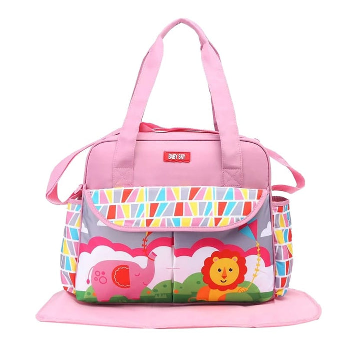 DescriptionBaby Sky diaper bag or nappy bag is a storage bag with many pocket-like spaces that is big enough to carry everything needed by someone taking care of a baby while taking a typical short outing.