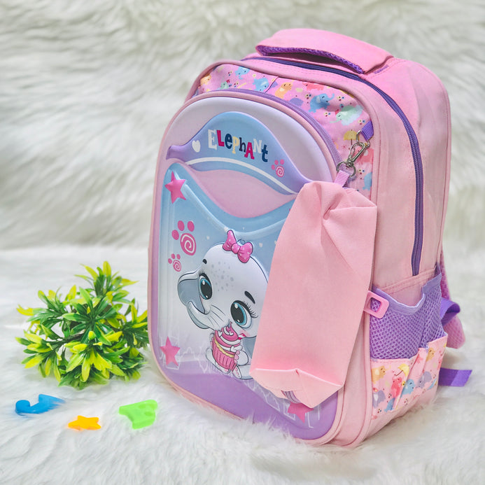 Pink Elephant School Backpack With Pouch Bag 2 Pc BG5541E