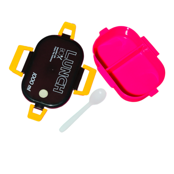 Pink Portable Rectangle Lunch Box With Spoon 1000 ML BCP1052E