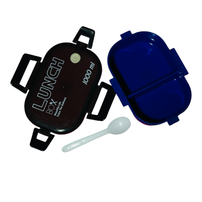 Blue Portable Rectangle Lunch Box With Spoon 1000 ML BCP1052F