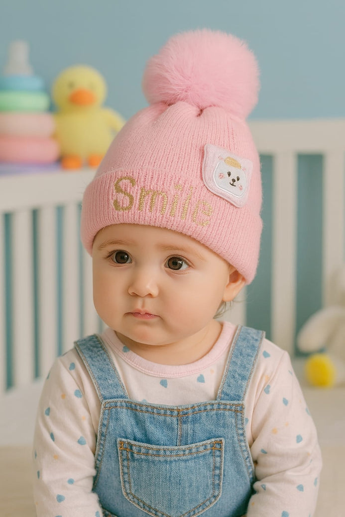 Pink Winter Baby Knitted Woolen Warm Cap (1-3 Years) CP5077C