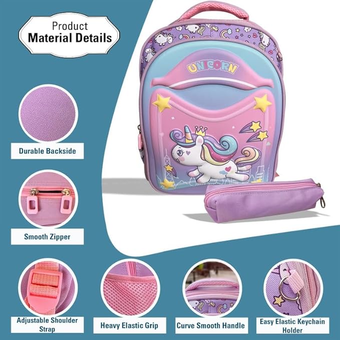 - Large Capacity Storage School Bag:- * Mai Pocket (for many book and cloths) * Centre Pocket (for many book and cloths) * Front Pocket (for pen, card and miscellaneous things) * 2 Side Pocket (for bottle and umbrella)