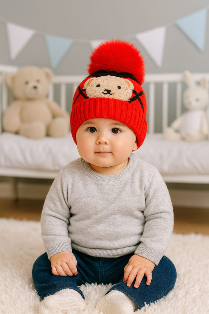 Blue Baby Winter Woolen Warm Cap CP5078B Red Baby Winter Woolen Warm Cap CP5078A Light Purple Winter Baby Knitted Woolen Warm Cap  (1-3 Years) CP5077F