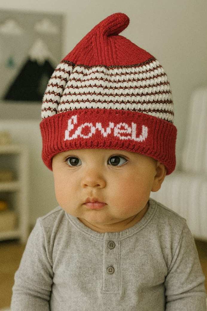 Red Fashion Happy Baby Knitted Warm Winter Wool Cap (6 Months -3 Years) CP5088A