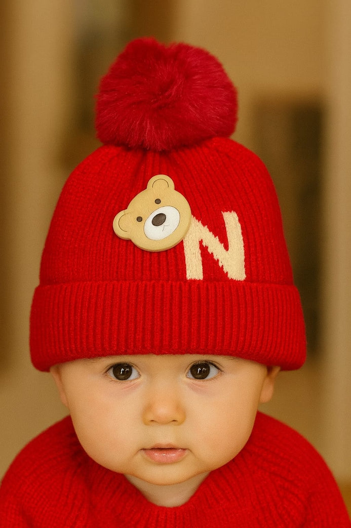 - Red Baby Bear Knitted Warm Winter Wool Cap (6 Months -3 Years) CP5086B
