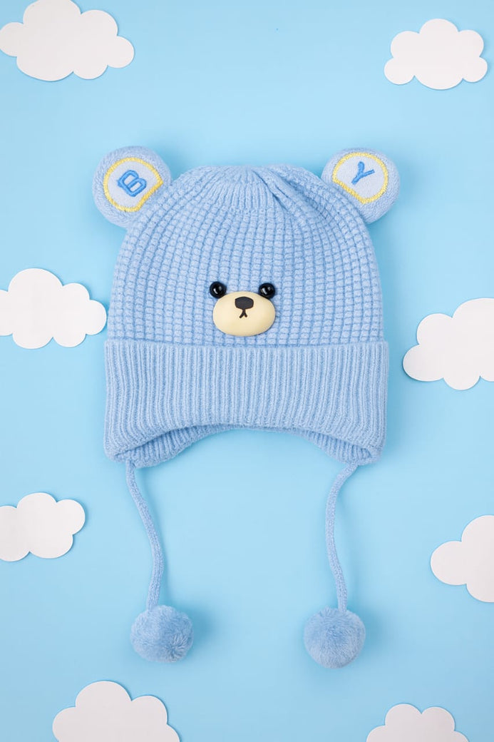 Sky Blue Baby Bear Knitted Warm Winter Wool Cap (6 Months -3 Years) CP5086D