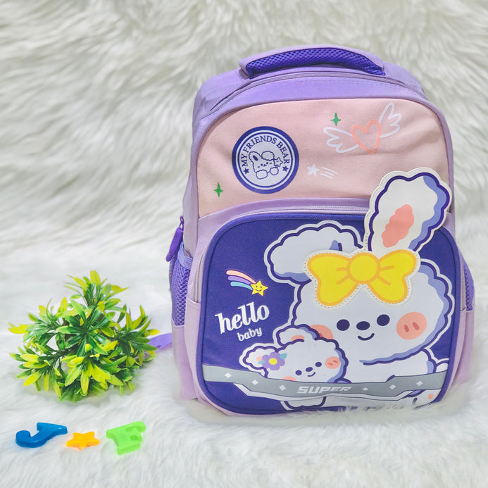 Green & Purple Girls Rabbit & Slogan Graphic Functional Backpack School Bag BG5540B T Pink & Purple Girls Rabbit & Slogan Graphic Functional Backpack School Bag BG5540A Premium Quality Alska 3 D School Bag for Girls of Preschool & Grade 1-5 BG5535A