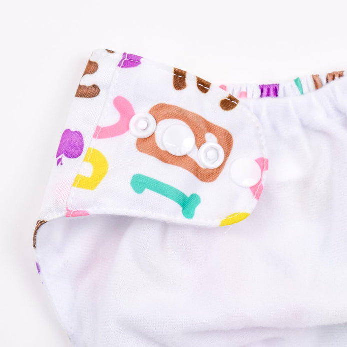 - Adjust the diaper to your desired size small, medium, or large by snapping onto different rows of buttons on the nappy