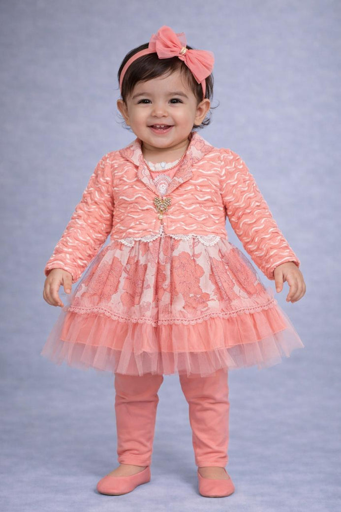 - 3pcs/ Set Pink Fancy Frock, Event Outfit, Children's Clothing, Baby Clothing for Outdoor FD6429D