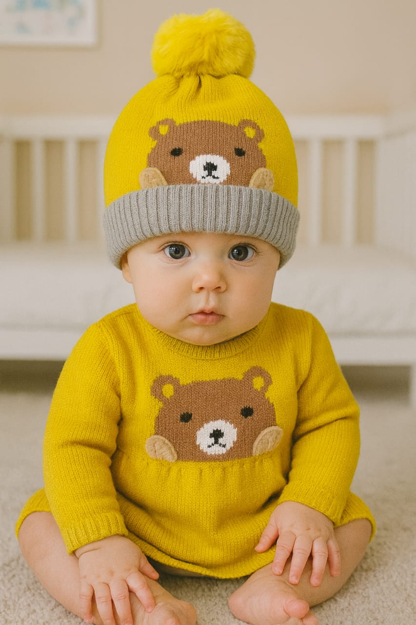 Yellow Baby Bear Face Warm Winter Wool Cap (0 Months - 24 Months) CP5098D
