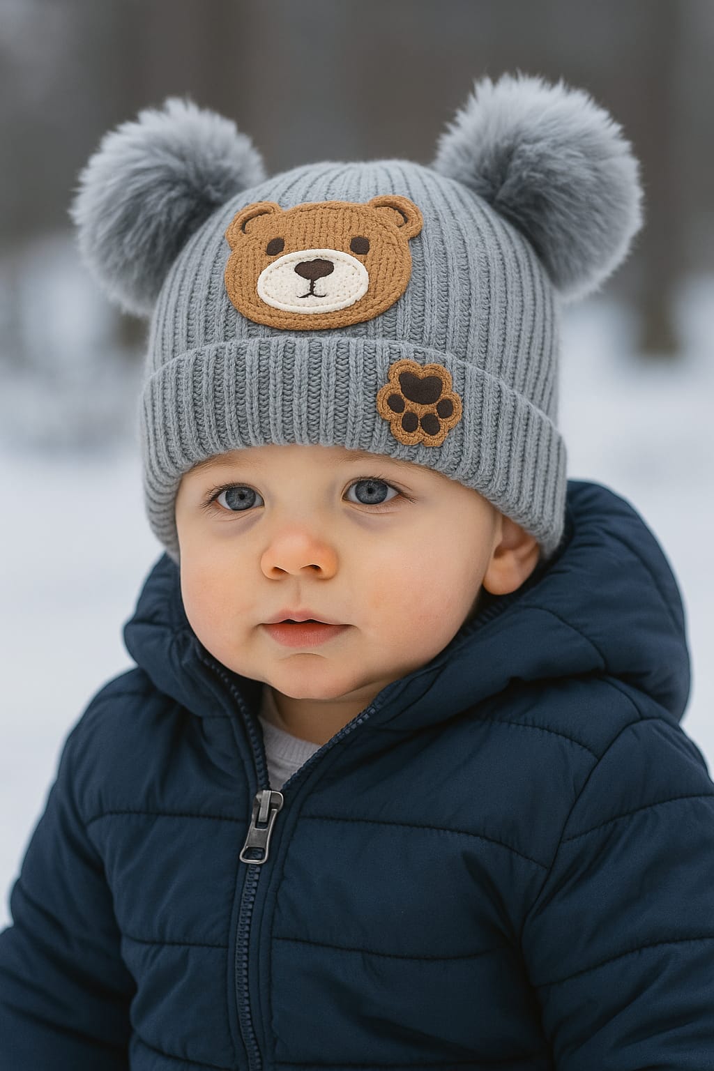 Gray Baby Bear Face Warm Winter Wool Cap (0 Months - 24 Months) CP5105F