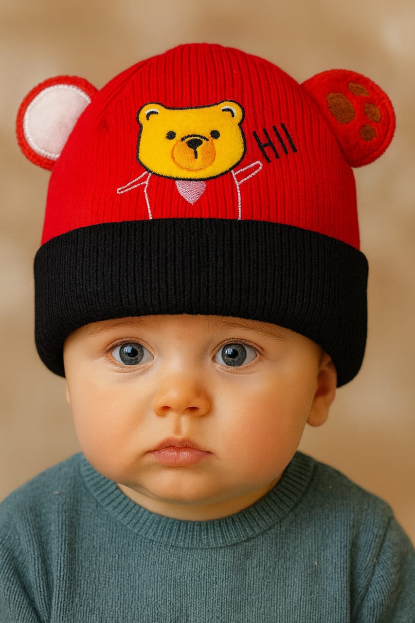 Red Baby Bear Face Warm Winter Wool Cap (0 Months - 24 Months) CP5109A
