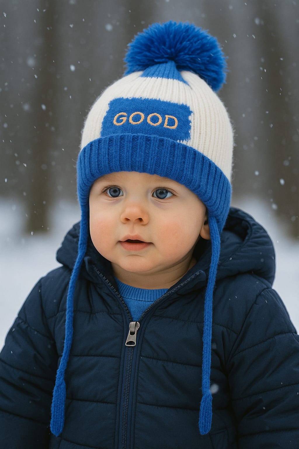 Royal Blue and White Fashion Knitted Warm Winter Wool Cap (1 Years -5 Years) CP5106A