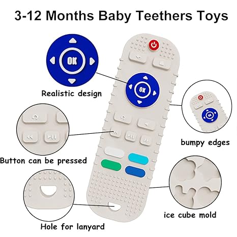 Baby Teething Toys Food Grade Silicone Teether for Babies 3 6 9 12 Months, TV Remote Shape Toddlers Chew Toys, BPA Free Boys Girls Baby Teething Toys