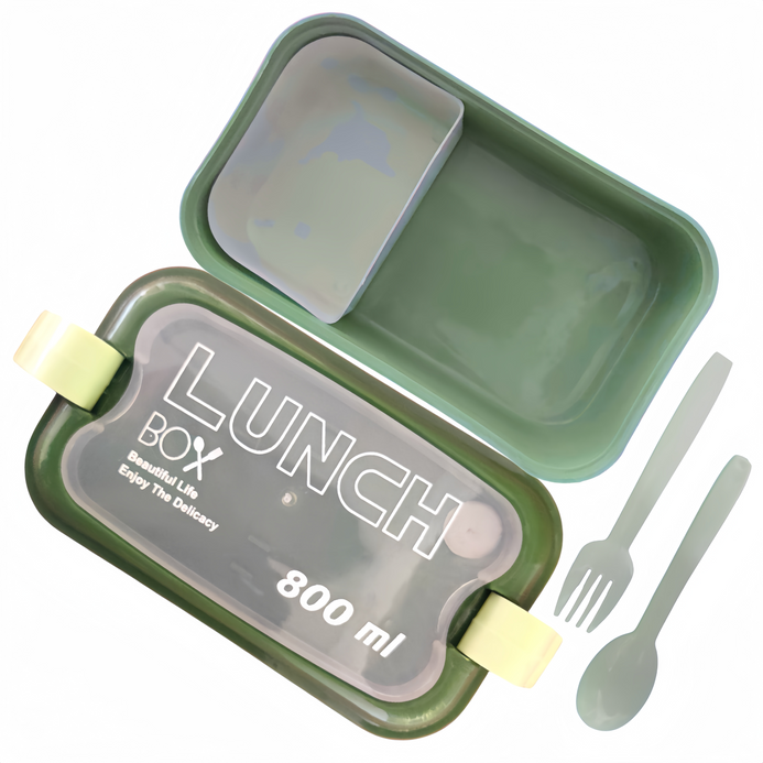 - 2 Compartment Lunch Box: This plastic lunch box has two compartments, can choose, you can carry different kinds of lunch food in one container, no need to mix together, with spoon and fork, built-in cutlery storage , don't be afraid to forget to bring cutlery.