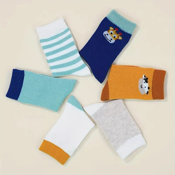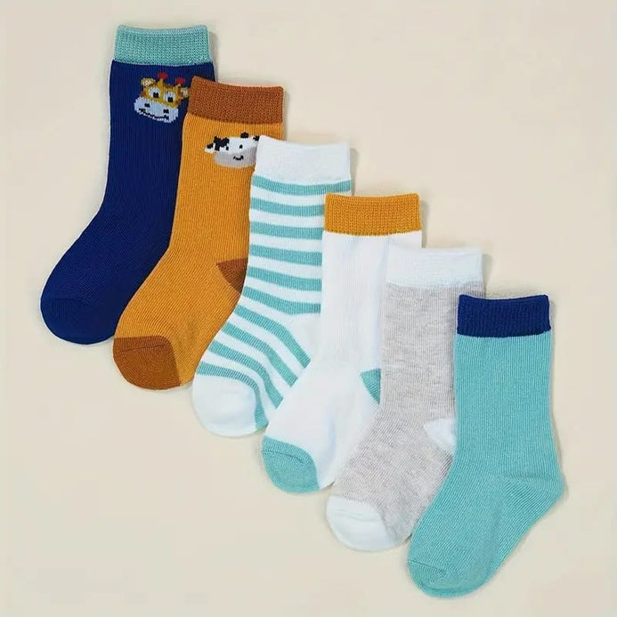 6 Pairs of Colorful Breathable and Comfortable Short Round Neck Socks for Boys and Girls Socks, Suitable for Four Seasons (0-6 Months) SK3024B