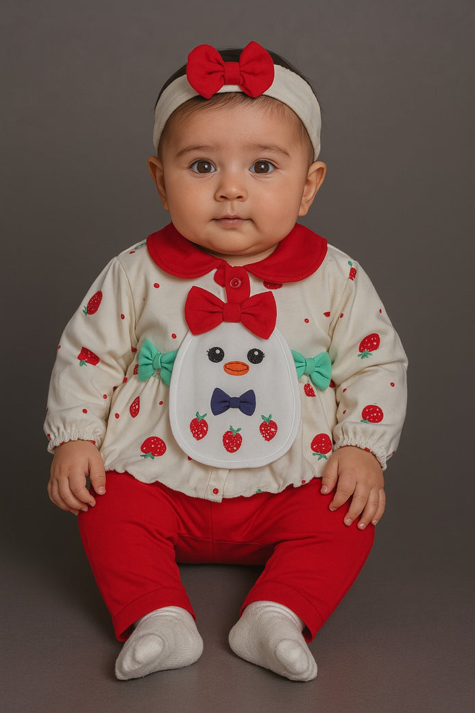 Baby Girl'S Red Cartoon Print - Soft Ruffled Full Sleeve Romper with Bow Detail, Autumn/Winter Comfort, Newborn Clothing, Dressy Style, Comfortable Fit, Perfect for Outdoor BS6416B