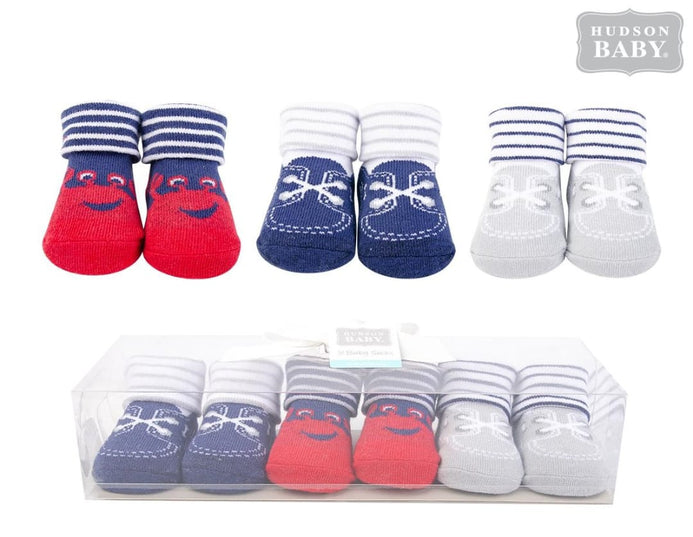 Gray & Blue 3-Piece Little Shoe Socks Gift Set is a perfect gift for a newborn baby! These socks are stretchable for better fit, soft and comfortable, and come in an acetate box with gift ribbon.