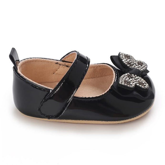 Black Fashionable Baby Girl's Bow with Rhinestone Decor Rubber Anti-Slip Soft Sole Shoes SH7125A