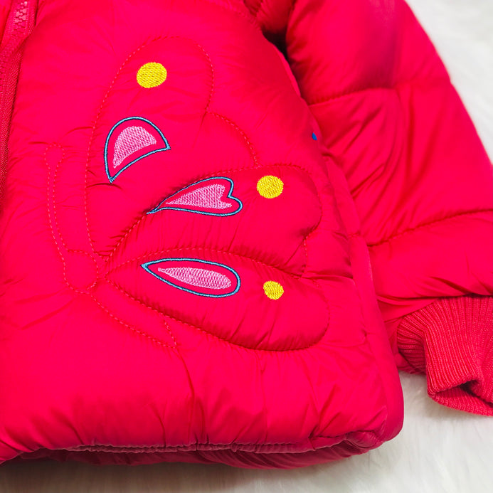 Girls Pink Butterfly Warm Inner Furr Hooded Puffer Jacket HJ6206C