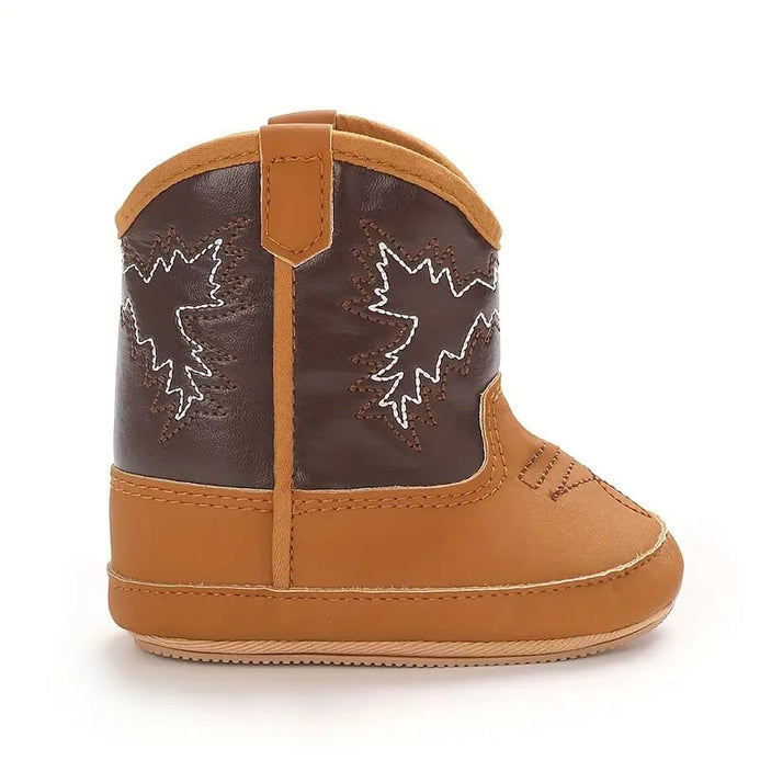 Infant Girls' Embroidered Cowboy Boots, Casual Mid-Calf Western Style Booties, Solid Color PU Upper, Fabric Lining, Rubber Sole, with Adjustable Strap Closure SH7164C