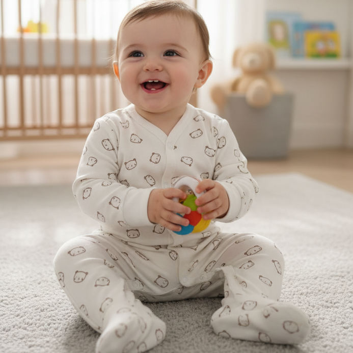 - JF White Bear Face Printed Full Feet Cotton Romper Body Suit BS6425C