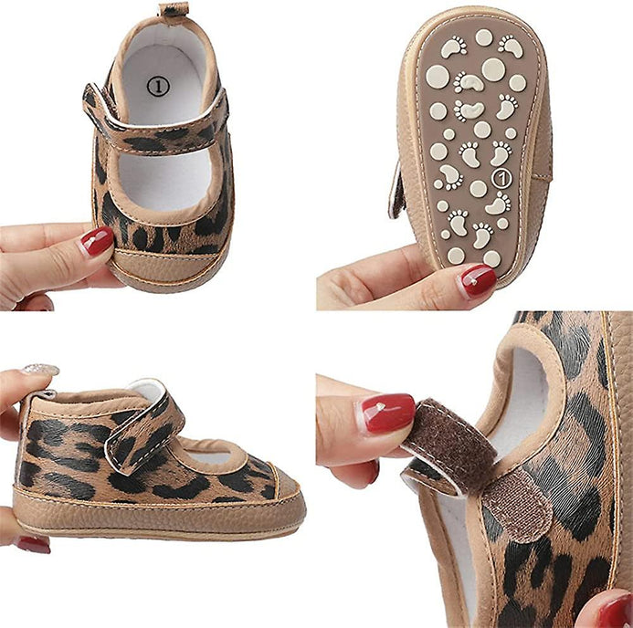 Black with White Dots Baby Girls Shoes SH7146B Leopard Printed Baby Girls Shoes SH7146A Brown Toddler Baby Girls Shoes SH7145B
