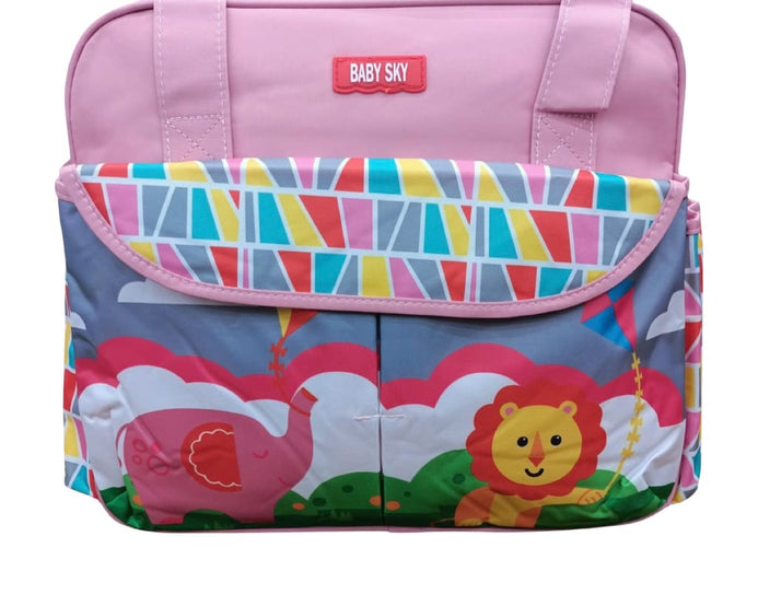 Pink Baby Sky Lion Printed - Diaper Bag with Front Pocket Diaper Travel Bag BG5528B