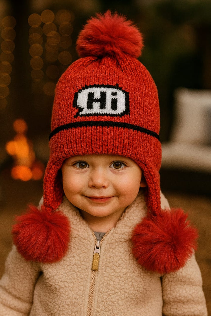 - Red Winter Warm "Hi" Wool Cap (1-4 Years) CP5005F