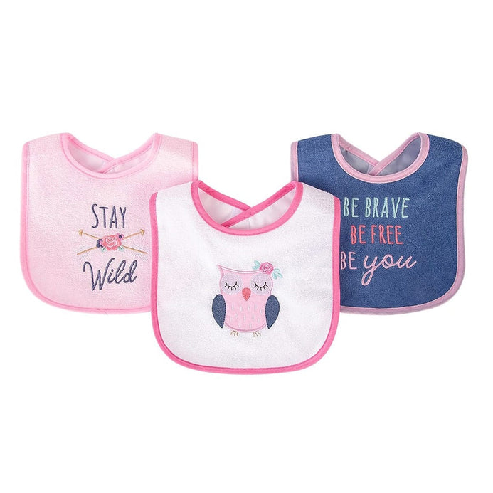 This pack of 3 fun drooler bibs are a great way to accessorize and keep your little one’s clothes clean! Made of cotton blend knit with PEVA backing. Bib measures about 6 inches from neck down.