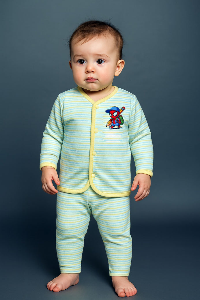 2 Pcs Baby Green Cute Animal Cartoon Print Long Sleeve Body Suit, Comfortable Spring And Autumn Outdoor Wear BS6413A