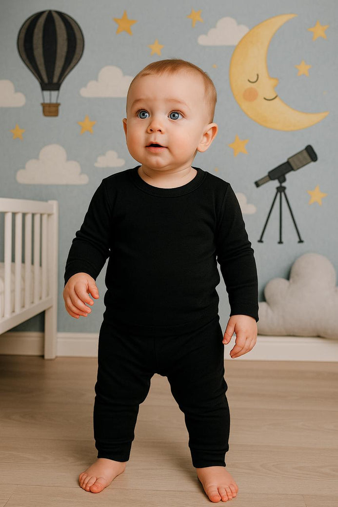- 2pcs Black Adorable Baby Inner Warmer Suit Set BS6423B