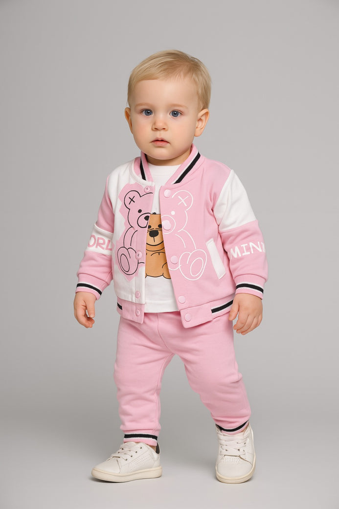 3 Pcs Baby Pink Cute Animal Design, T-shirt, Pant & Jacket, Suit & Dress, Comfortable Autumn & Winter Outdoor Wear SD6414B
